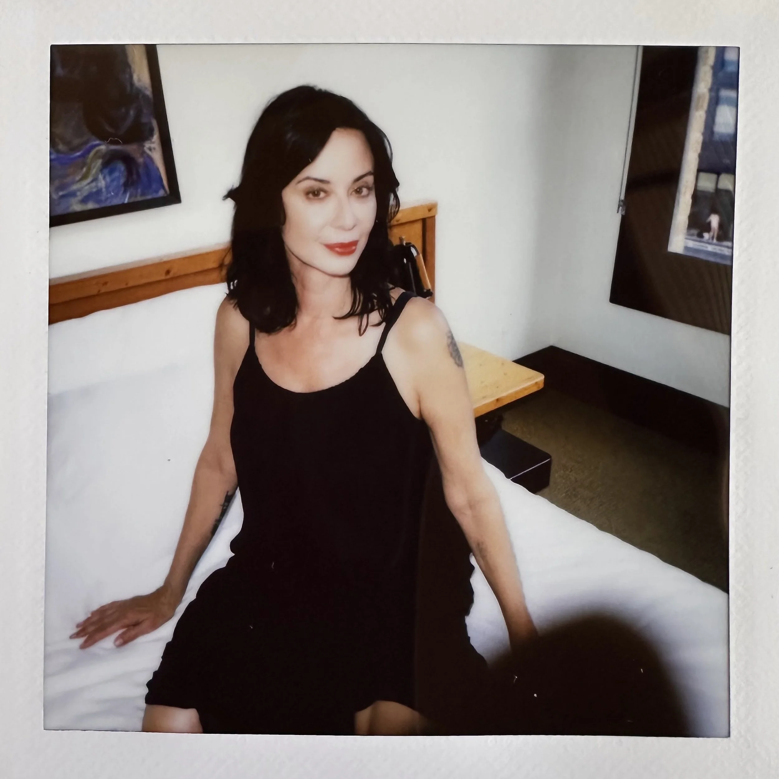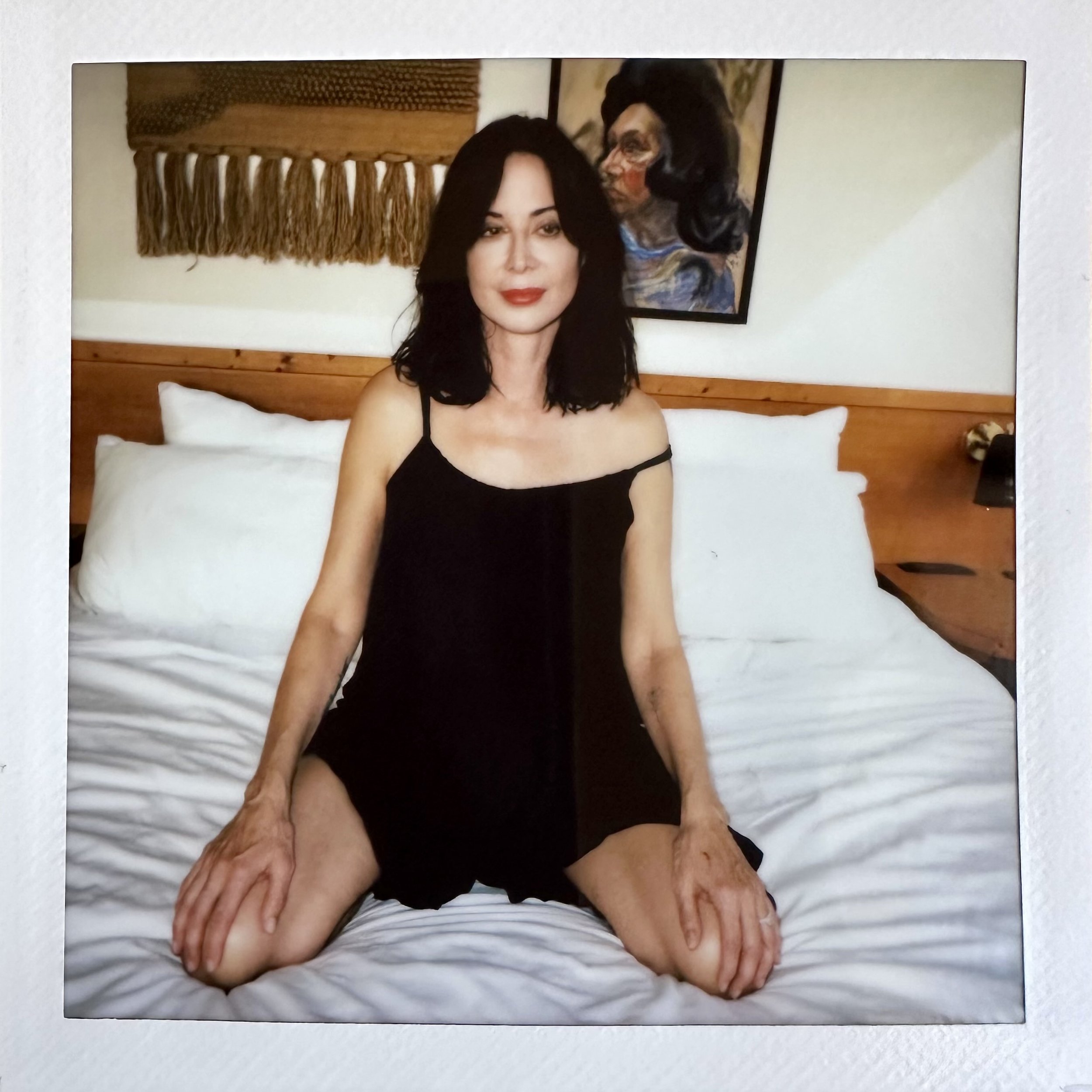 had the pleasure of starting the new year off with beautiful positive vibes from Catherine Bell who popped over to our LA hotel for a spontaneous and fun photoshoot and chat. with a glowing face and natural hair she took all her jewelry off, even the most gorgeous heart pendant from her own collection, and got in the fresh-start-energy mood, stripped away the unnecessary, keeping only the bare essentials, which in this case was a crisp, red lip, and ditching the black mascara for brown. scroll down for her words of inspiration and insight into 2026.