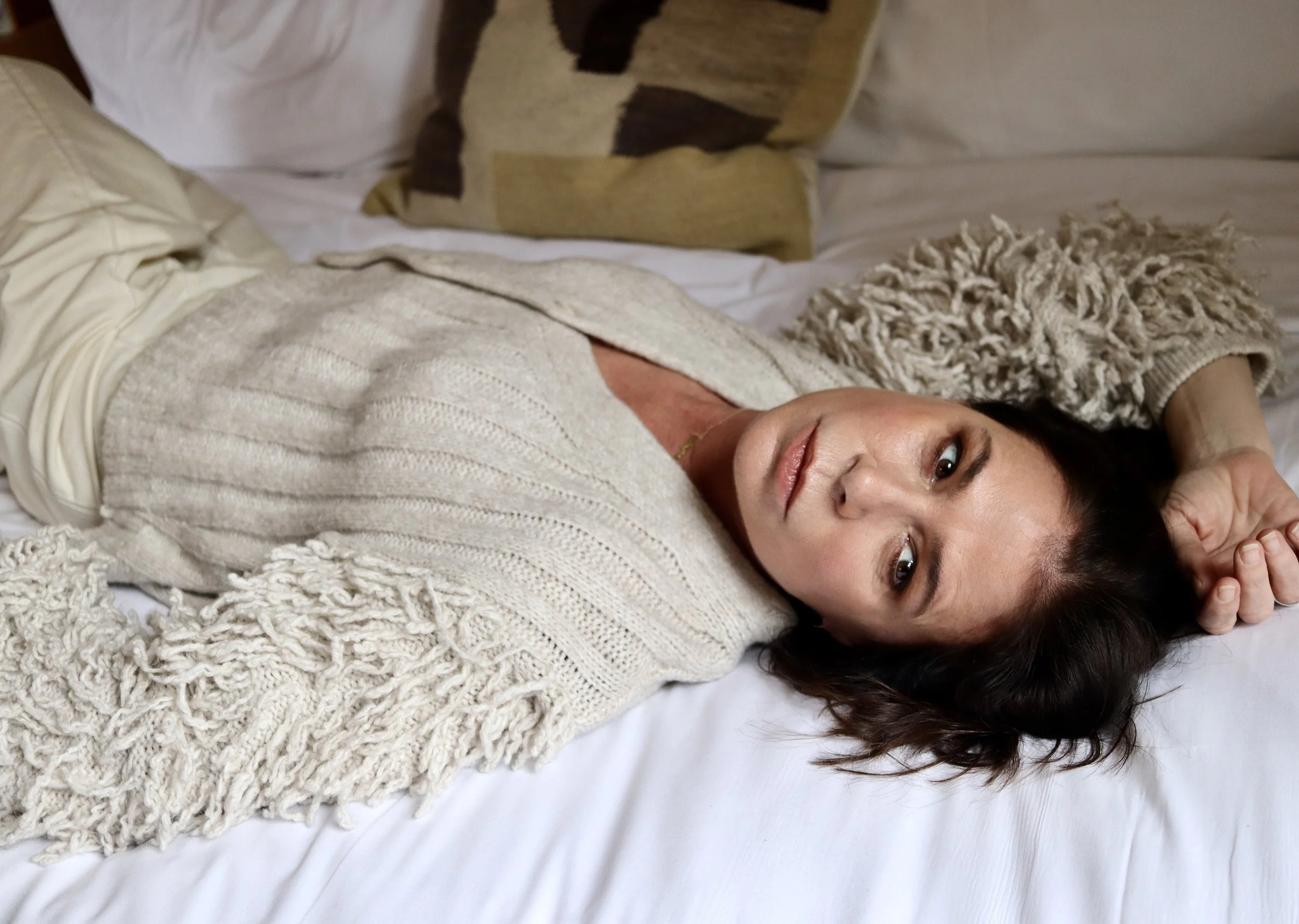 knit sweater: maria pavan cream jeans: pier antonio gaspari